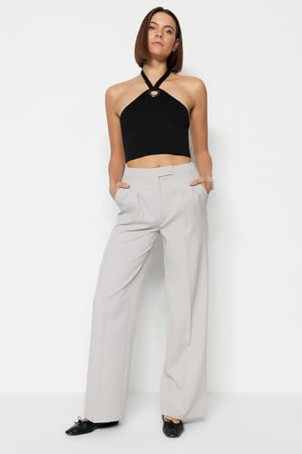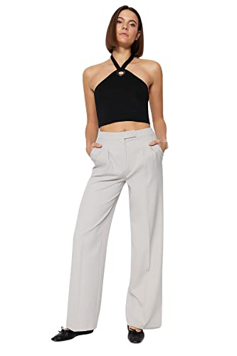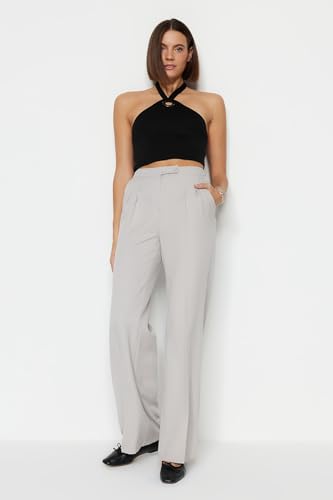 Trendyol - بنطلون قماش من نسيج محبوك بأرجل واسعة وخصر مرتفع للنساء TWOAW22PL0066 من ترينديول