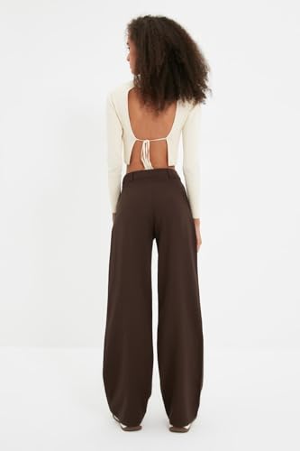 Trendyol - بنطلون طراز TWOAW22PL0475 من القماش المنسوج بكسرات وأرجل واسعة من ترنديول