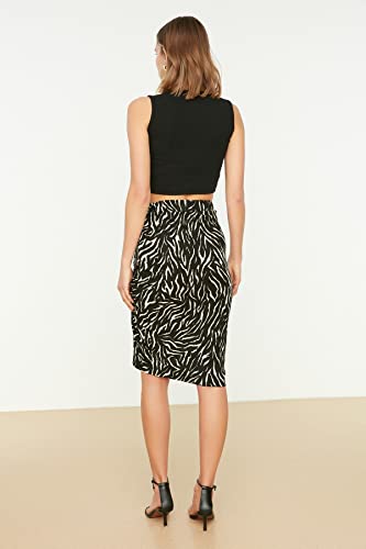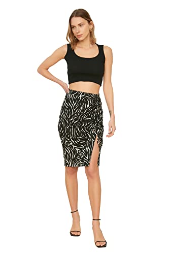 Trendyol - ترنديول تنورة قصيرة محبوكة عالية الخصر مطبوعة سوداء للنساء مع طيات وفتحات TWOAW22ET0401