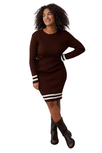 Trendyol - فستان براون مخطط من نسيج مضلع منسوج للنساء من ترينديول، Tbbaw24ah00019 - مقاس كبير (عبوة من قطعة واحدة)