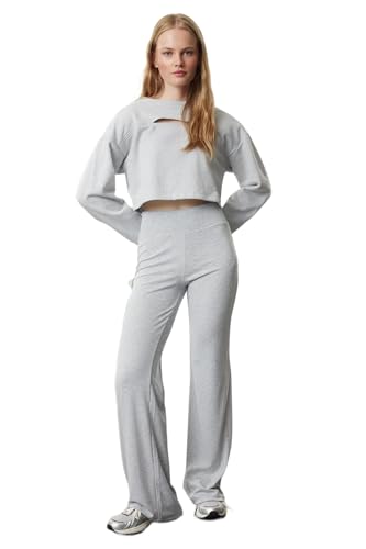 Trendyol - ترنديول بنطلون محبوك قابل للتمدد بخصر مرتفع وارجل اسبانية للنساء بلون كلاريت روت، موديل Twoaw25pl00006 (عبوة من قطعة واحدة)