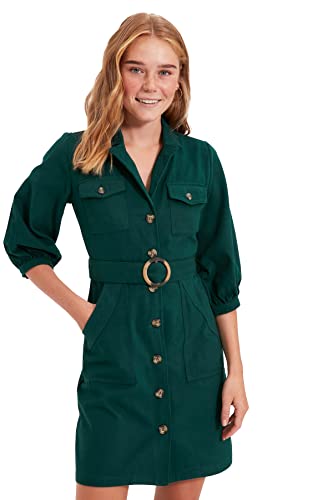 Trendyol - ترنديول فستان منسوج بتفاصيل ربطة عنق للنساء بلون كاكي موديل TWOAW20EL1156 (عبوة من قطعة واحدة)