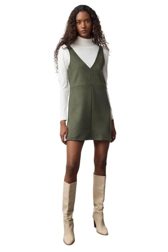 Trendyol - فستان شمواه قصير منسوج بجيليه برقبة على شكل حرف V للنساء طراز Twoaw24el00543 من ترنديول، لون كاكي، (عبوة من 1 قطعة)