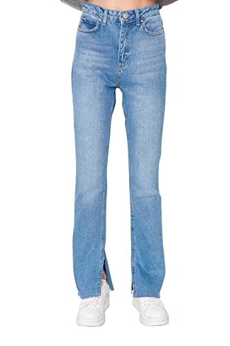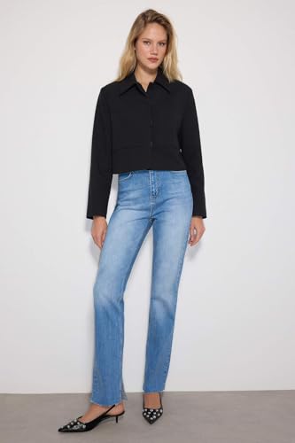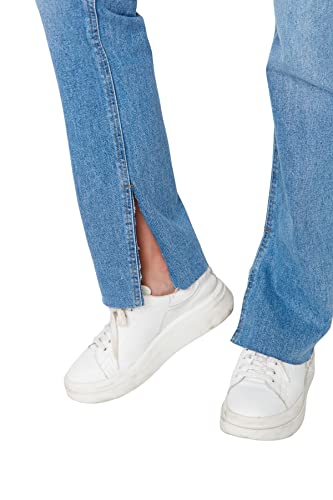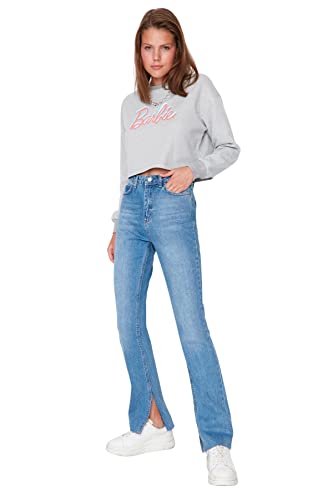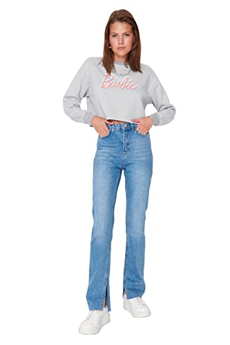Trendyol - ترنديول بنطلون جينز بخصر مرتفع وفتحة واسعة للنساء بلون كحلي موديل Twoaw22Je0382 (عبوة من قطعة واحدة)