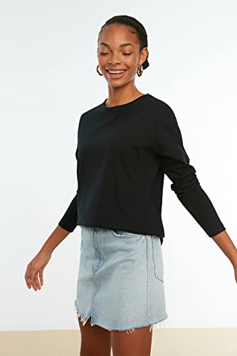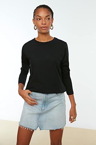 تيشرت بيسيك منسوج بأكمام طويلة ورقبة دائرية ضيقة وقصة عادية/ عادية من القطن بنسبة 100%، طراز TWOAW21TS0098