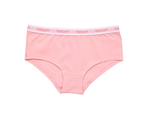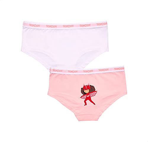 Trimoon - طقم بانتي متوسط الخصر قطن سادة ومطبوع بأستك للبنات من تريمون Super Lila - ابيض وبينك، قطعتين