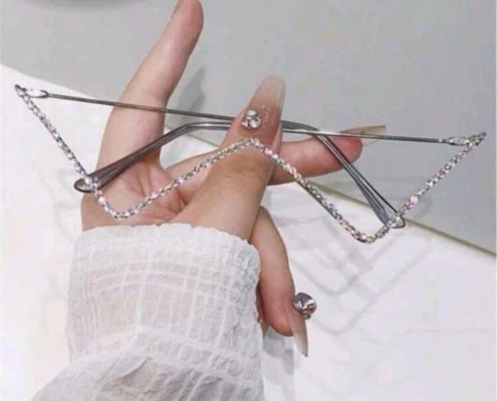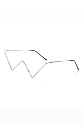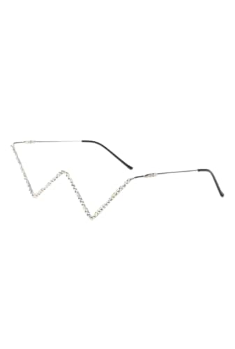 Generic - نظارة ترينج بدون عدسات مرصعه بفصوص فضية، ابيض