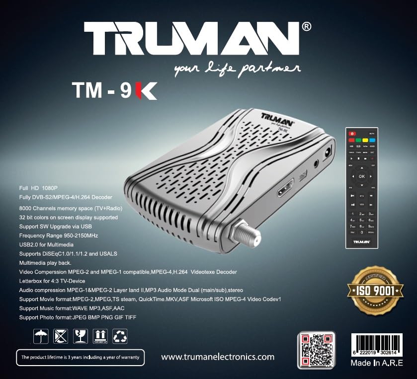 Truman - جهاز استقبال رقمي صغير TM 9K بتصميم عالي الدقة HD من ترومان