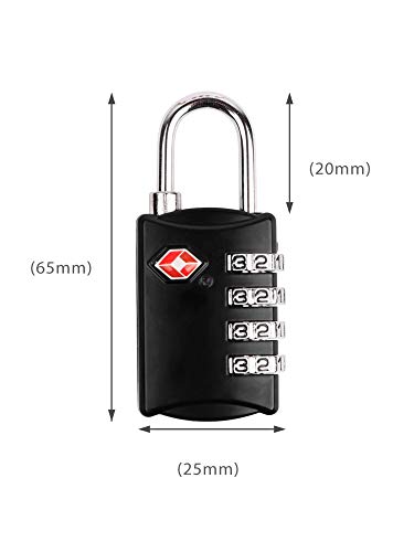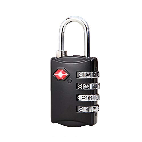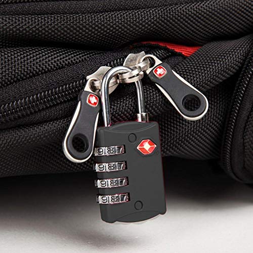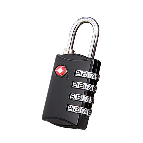 - تي اس اي قفل أمتعة معتمد من خليط معدني من الزنك مكون من 4 أرقام بكلمة مرور وحقيبة الظهر وقفل معدني من الستيل قفل سفر لشنط السفر والأمتعة، لون أسود