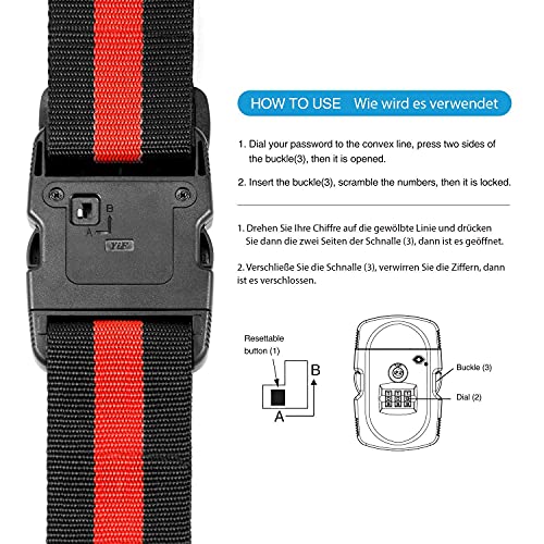 TSA - حزام قابل للتعديل بقفل 3 أرقام لشنطة صالة الألعاب الرياضية وشنطة السفر وجميع أنواع الشنط