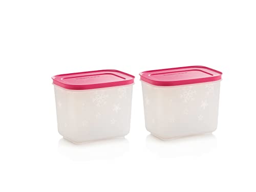 Tupperware - طقم علب فريزر ميتس الطويلة بحجم صغير سعة 1.1 لتر (2)، من تابروير، فوشي، 750.0 واط