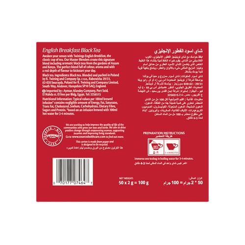 Twinings - صندوق شاي اسود اكياس من تويتتينجز بدون نكهة - 50 كيس
