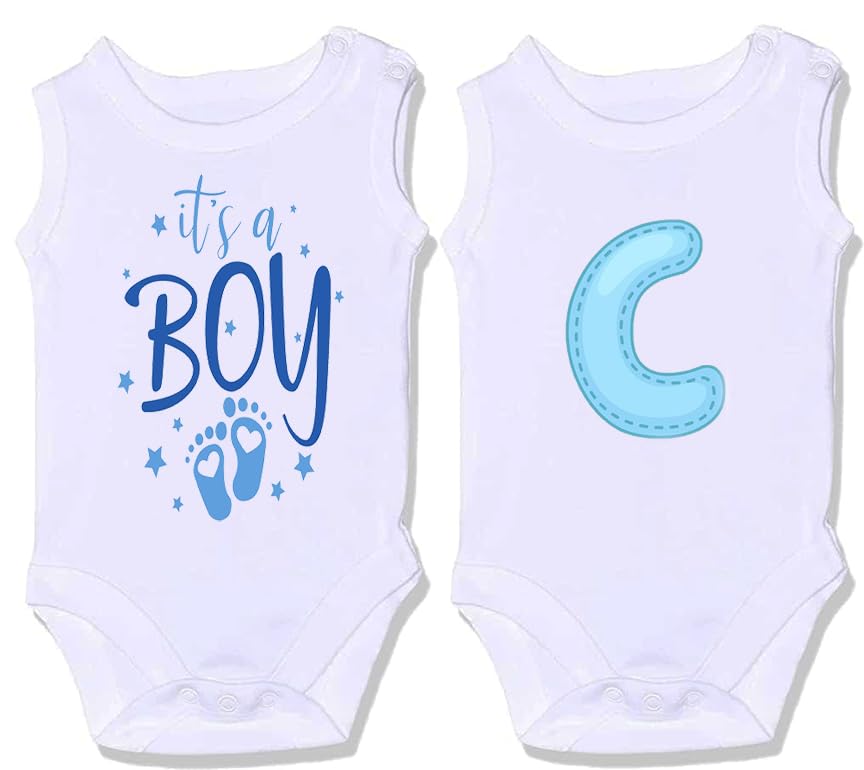 Generic - سالوبيت كات بكباسين قطن 100% بأشكال مميزة بتصميم عبارة "ITS A BOY" وحرف (C) لحديثي الولادة، قطعتين