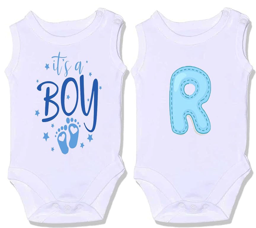 Generic - سالوبيت كت بكباسين قطن 100% بأشكال مميزة بتصميم عبارة «ITS A BOY» وحرف (R) للأطفال البيبي، مجموعة من قطعتين