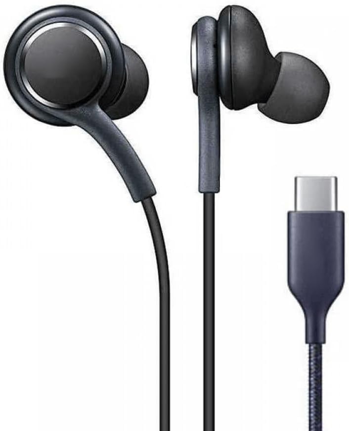 Generic - سماعة أذن بسلك ايه كيه-جي بمنفذ من النوع سي لسامسونج جالاكسي S21 FE شبكة الجيل الخامس 5G مع ميكروفون وجهاز تحكم مدمج وصوت باس قوي وعزل للضوضاء متوافقة مع سامسونج S20 FE وS21 وS21 FE 5G