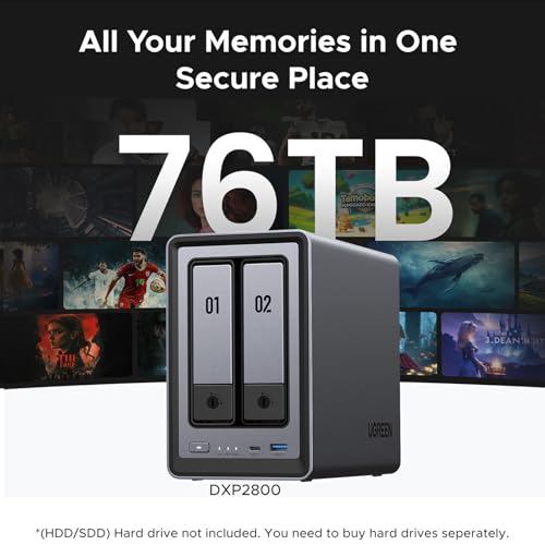 UGREEN - جهاز كمبيوتر مكتبي ناس ناسينك ثنائي الاتجاه من يوجرين، موديل DXP2800 (بدون أقراص)