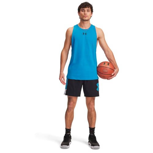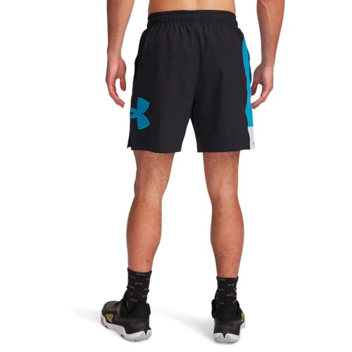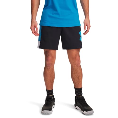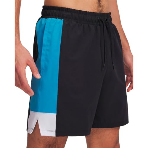 Under Armour - اندر ارمور شورت منسوج 7 انش للرجال من زون، مقاس S، اسود/ازرق ايثر/ازرق ايثر