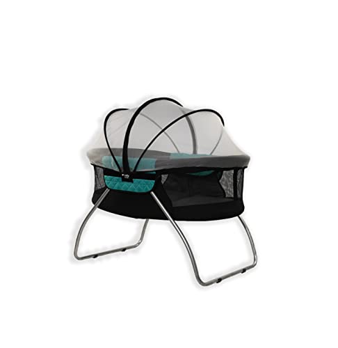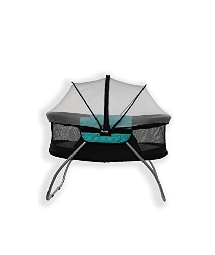 Petit Bebe - سرير للطفل البيبي محمول على اعمدة مع مرتبة للسرير بالكامل من بتيت بيبي، لون اكوا جرين