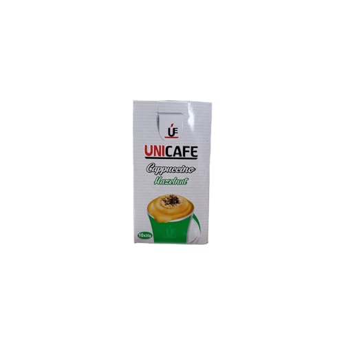 يو اف - كابتشينو يوني كافية بنكهة البندق - 10 أكياس × 20 جم - رغوة كريمية - قهوة فاخرة لعشاق النكهات المميزة