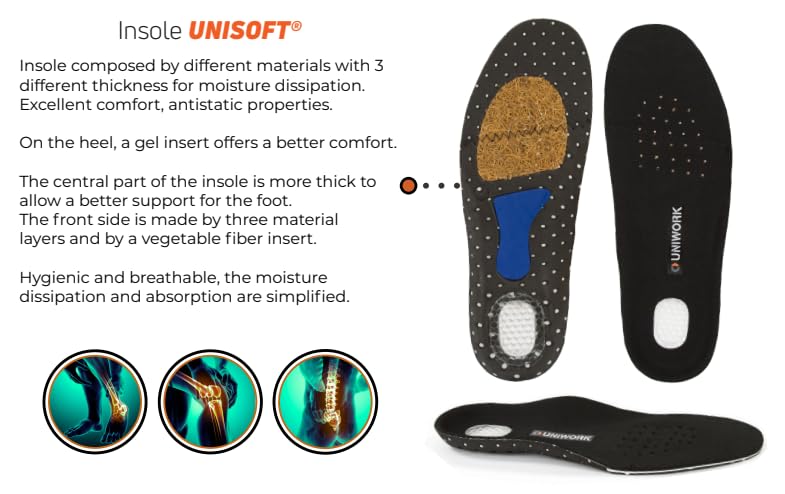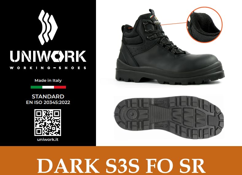 Generic - حذاء سيفتي للعمل من يوني وورك DARK S3S FO SR بلون اسود، مقاس متوسط (41)