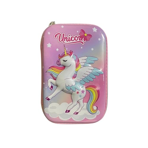 Generic - مقلمة واسعة بغلاف مقوى وتصميم وحيد القرن مزودة بسوستة معدنية بلون وردي