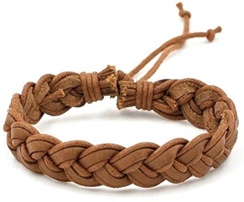 Other - سوار من الجلد المضفر للجنسين - لون بنى فاتح