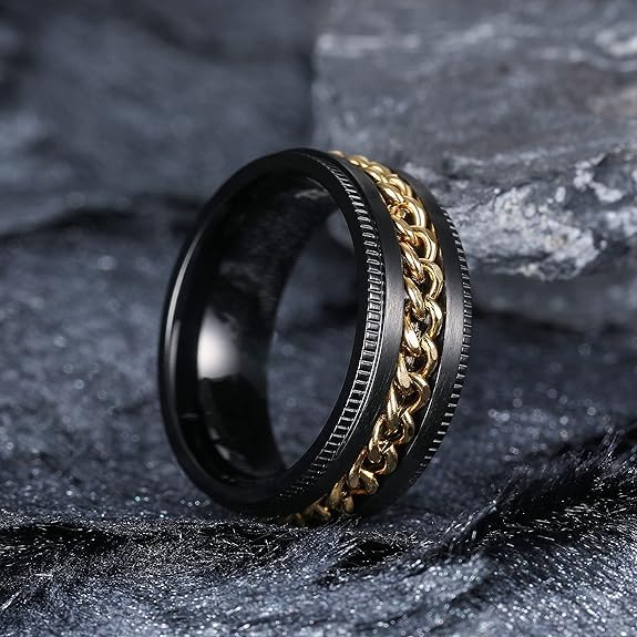 Generic - خاتم للجنسين اسود بسلسله دوارة لون ذهبي مقاس 19