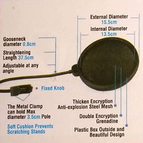 Unisound - يوني ساوند بوب فلتر 6 بوصة لاستوديوهات الصوت، هايبر كارديويد، USB، أسود
