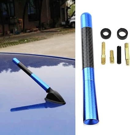 Generic - هوائي عالمي لراديو السيارة مقاس 12 سم يثبت على السقف، هوائي قصير باستقبال قوي لموجات اف ام وايه ام والاذاعة الرقمية طول 12 سم - لون ازرق كاربون -SA CAR