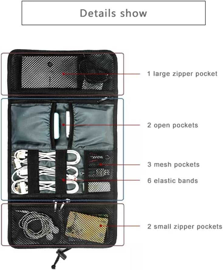 Generic - شنطة سفر عالمية لحمل الاكسسوارات الإلكترونية والشواحن وكابلات USB وبطاقات الذاكرة SD، لون أسود