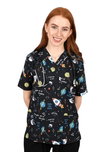 Resan Medical wear - زي طبي للأطباء مطبوع للمستشفيات موحد للجنسين خاص بطب الأسنان والجراحة بلوزة فقط بأكمام قصيرة، أزرق، لارج L