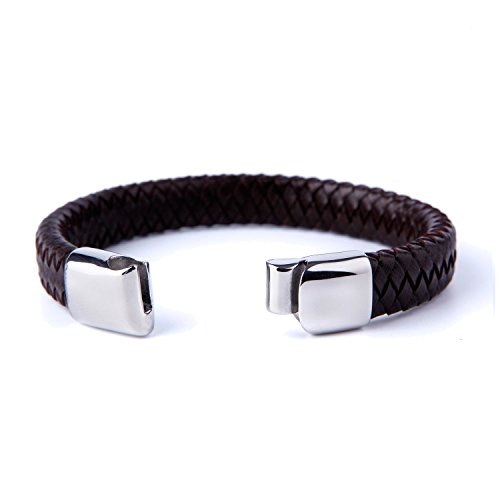 URBAN JEWELRY - اوربان جويليري سوار مضفر من الجلد الطبيعي للرجال بلون بني غامق مع مشبك انيق من الستانلس ستيل 316L