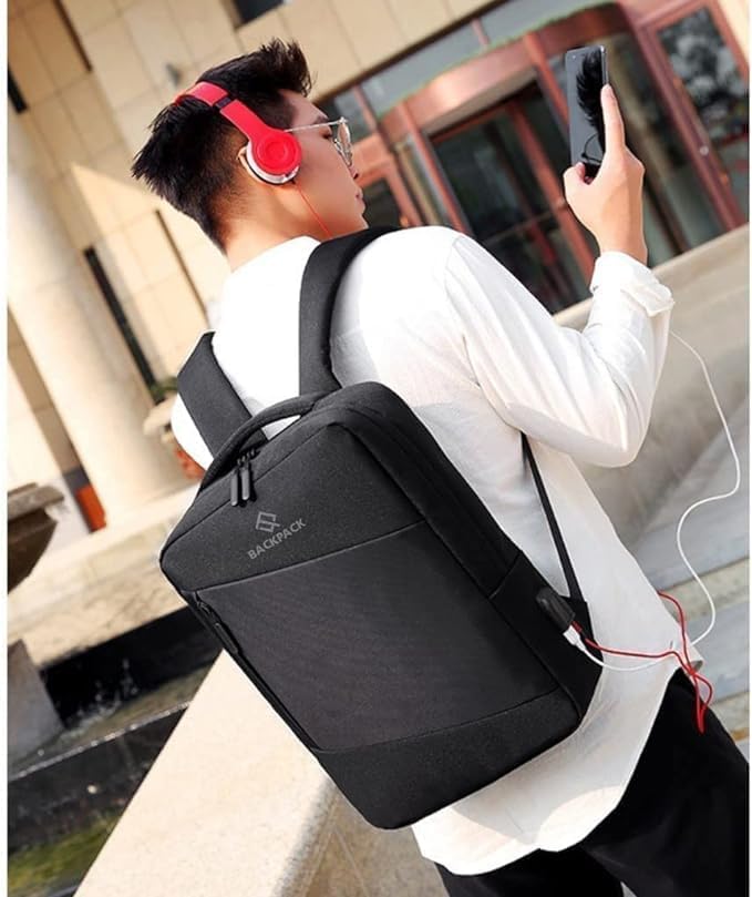 Generic - شنطة لاب توب مضادة للسرقة مع منفذ شحن USB ومقاومة للماء ومناسبة للنساء والرجال، مقاس 15.6 انش من لوكي بوي، أسود، 10