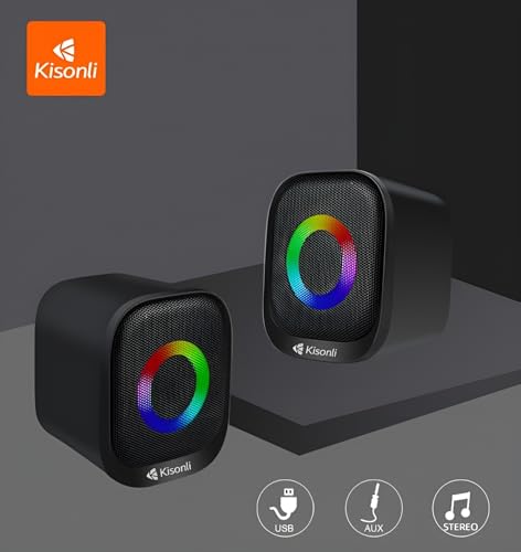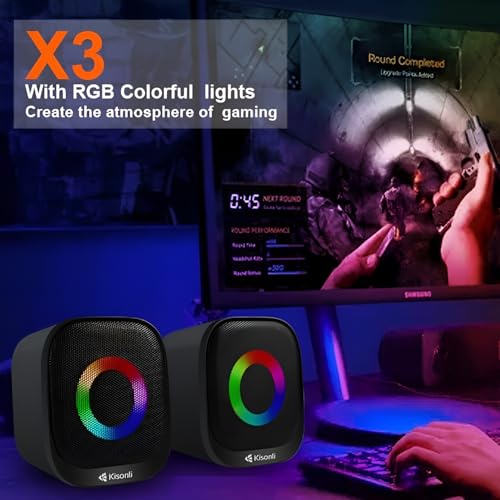 Generic - سماعات كمبيوتر USB 2.0 بصوت ستيريو مع اضاءة RGB ملونة - قوة 6 وات - مدخل صوت 3.5 ملم - موديل X3