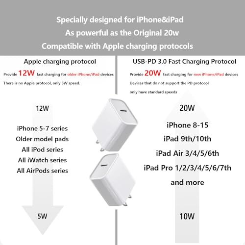- [شحن سريع 20 وات] تم تصميم شاحن USB نوع C هذا لأجهزة آيفون واي باد وايبود واي ووتش وايربودز. قم بتشغيل وضع USB PD 3.0 للحصول على سرعة شحن قصوى 20 وات للحفاظ على درجة الحرارة منخفضة. قم بتشغيل بروتوكول الشحن 5 فولت × 2.4 امبير لتوفير ما يصل إلى 12 وات لموبايل آيفون 7.