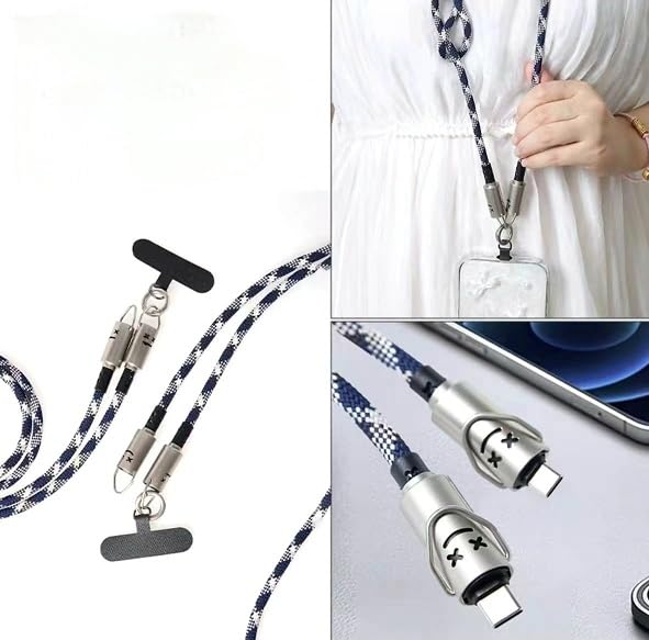 Generic - كابل USB "1.2 سم" من النوع C (لشاحن سريع للموبايل) متعدد الوظائف (أسود وأبيض)