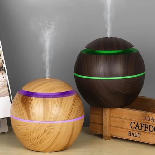 Generic - مرطب هواء بالموجات فوق الصوتية، موزع زيوت عطرية USB لتنقية الهواء للسيارة والأسرة والمكتب والمنزل وغرفة النوم وغرفة المعيشة والدراسة واليوجا والسبا (كرة بنية (خشبي غامق)، نوع سي 200 م)