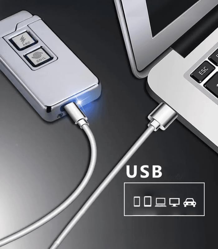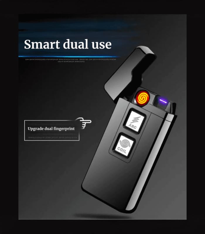 Generic - ولاعة الكترونية مزدوجة القوس قابلة لاعادة الشحن بمنفذ USB، تصميم ذكي، اسود