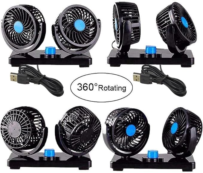 - 【 دوران 360 درجة】: كل مروحة يمكن تدويرها في جميع الاتجاهات (بزاوية 360 درجة) وتقسيم دوران الهواء وإبقاء الهواء في المركبات او المكتب منعشًا وباردًا. وتشغيلها على اى منفذ USB