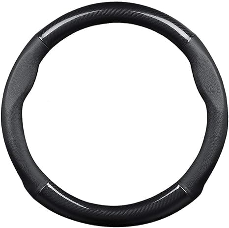USHOP - غطاء طارة دركسيون للسيارة للنساء والرجال من يو شوب، مصنوع من الجلد والياف الكربون، يناسب سيارات الدفع الرباعي والشاحنات وسيارات الركوب العادية والسيارات والشاحنات، لون اسود، بمقاس شامل 15 بوصة