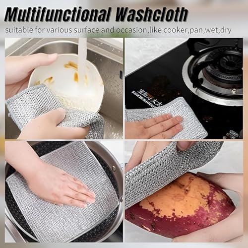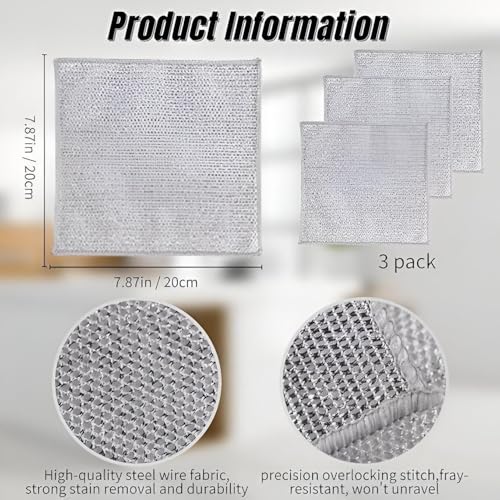 Generic - مناديل متعددة الاستخدامات - قماش تنظيف ممتاز متعدد الاستخدامات من الياف الستيل مثالي للمطابخ والحمامات والباحات، يقاوم الرائحة والصدأ، يحافظ على اللمعان بدون خدوش، يتضمن 3 مناشف قابلة للغسل