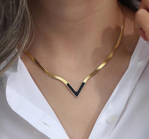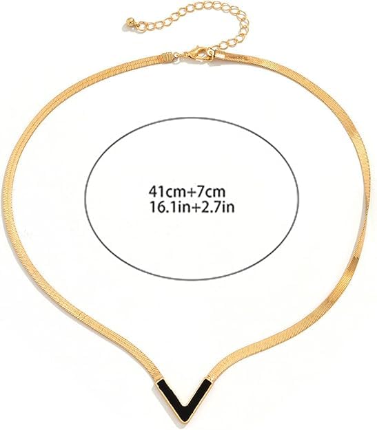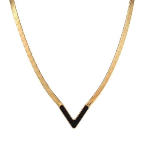 Generic - قلادة سلسلة على شكل ثعبان على شكل حرف V، مطلية بالذهب، لمسة سوداء، مجوهرات عصرية