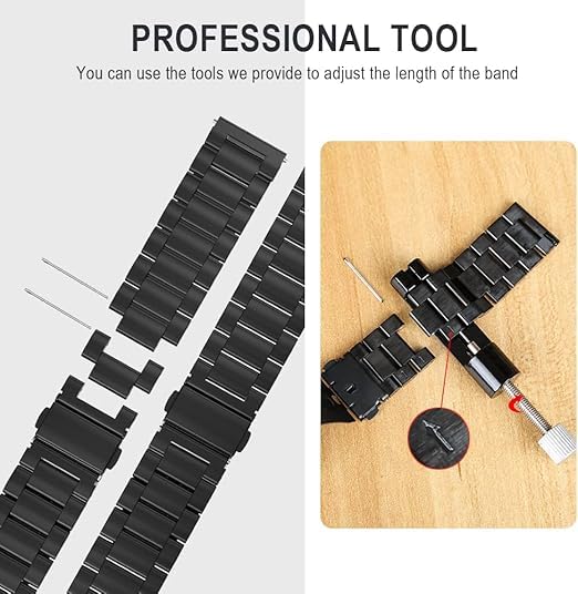 - [تصميم فاخر ومتين]: هذا السوار المعدني المصنوع من الفولاذ المقاوم للصدأ عالي الجودة مصمم لتوفير لمسة من الأناقة والمتانة في نفس الوقت. يضيف التصميم الأنيق مظهرًا عصريًا إلى ساعتك، مع مواد مقاومة للتآكل والخدوش، مما يجعلها خيارًا ممتازًا للاستخدام اليومي والمناسبات الخاصة. يعزز السطح المصقول بعناية جاذبية السوار ويجعل من السهل تنظيفه والحفاظ عليه، ويحافظ على لمعانه لفترات طويلة.