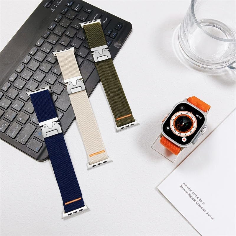 V Volt - سوار ساعة من V Volt متوافق مع اي ووتش سيريس 1/2/3/4/5/6/7/8/9/10/الترا/الترا2 مقاس 42/44/45/46/49 أنيق من النايلون المعدني بإبزيم معدني سريع الفتح