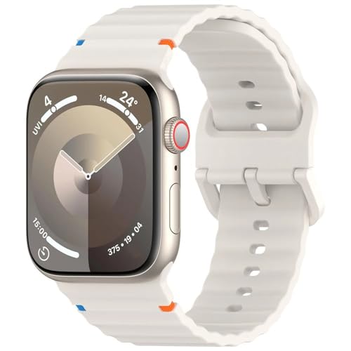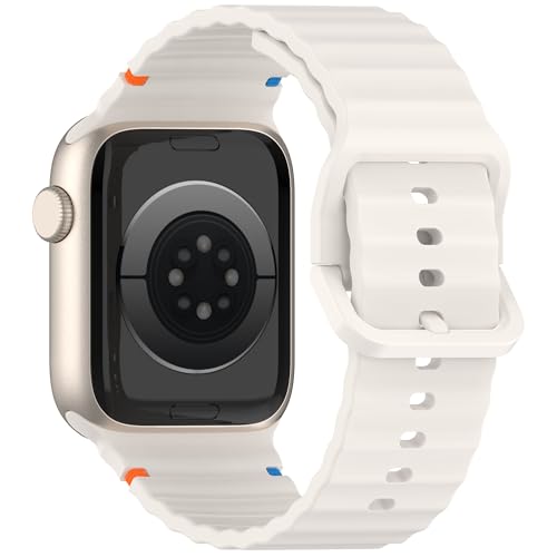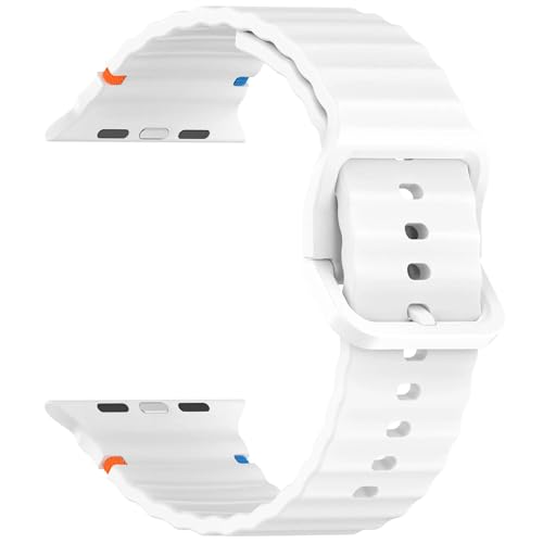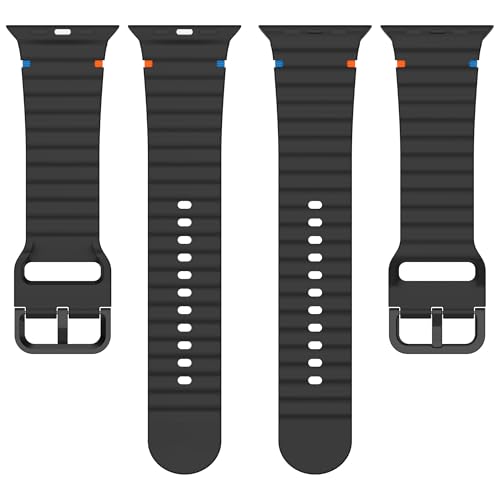 V Volt - سوار سيليكون من V Volt بخطوط مموجة متوافق مع اي مقاس سيريس 1/2/3/4/5/6/7/8/9/10 الترا/الترا2 مقاس 49/46/45/44/42 - بتصميم مريح وأنيق مقاوم للعرق مزود بخياطة متينة