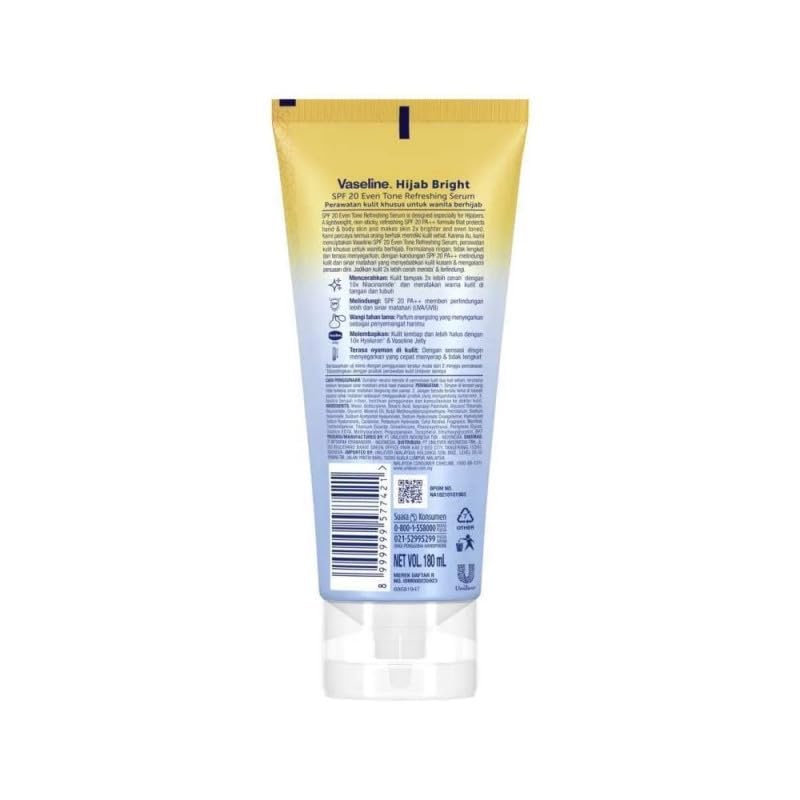 Vaseline - سيروم ايفن تون المنعش بعامل وقاية من أشعة الشمس 20 حجاب برايت فازلين 180 مل كريم جاف