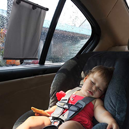 VaygWay - شماسة لنافذة السيارة من فايجي واي، ستائر دوارة للسيارة قابلة للسحب، مظلة نافذة السيارة للأطفال، شماسة نافذة خلفية وجانبية عالمية، حاجب شمس تلقائي، تحمي من الأشعة فوق البنفسجية والحرارة، قطعتين