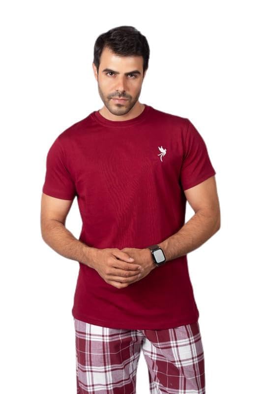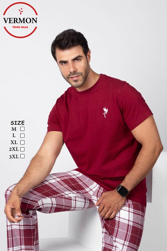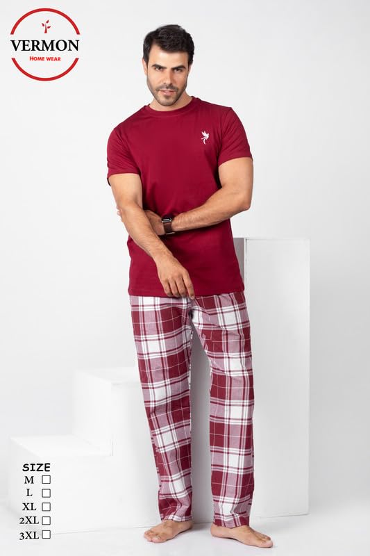 Vermon - فيرمون طقم بيجامة كاروهات للرجال بلون بورجندي مقاس M