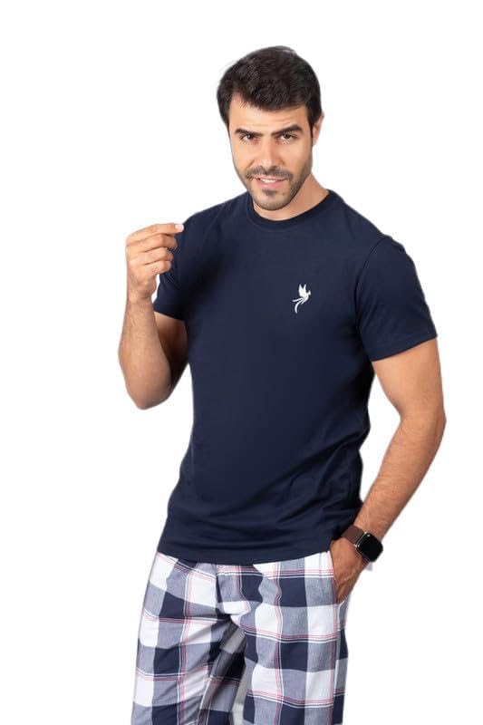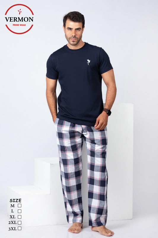 Vermon - فيرمون طقم بيجامة كاروهات للرجال، لون كحلي، مقاس Lage