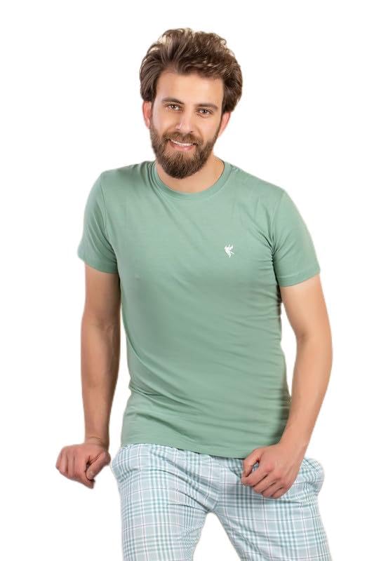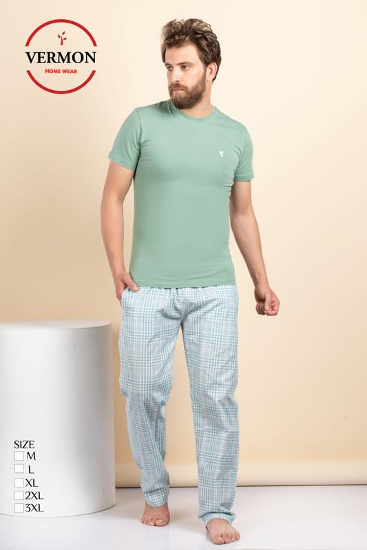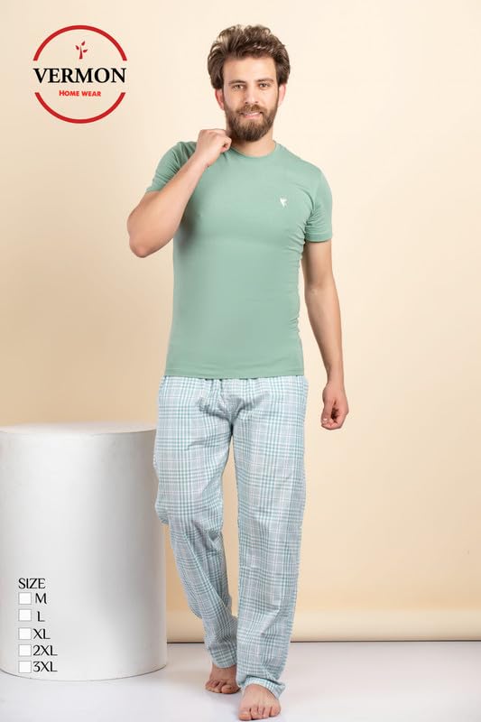 Vermon - فيرمون طقم بيجامة صيفي كاروهات للرجال بلون اخضر مينت - مقاس M - S1052